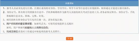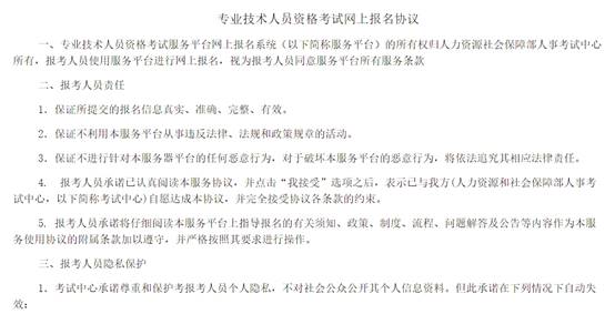 閱讀專業(yè)技術(shù)人員資格考試網(wǎng)上報名協(xié)議,并點擊【接受】按鈕,此時進入注冊須知頁面,如圖1-4。?