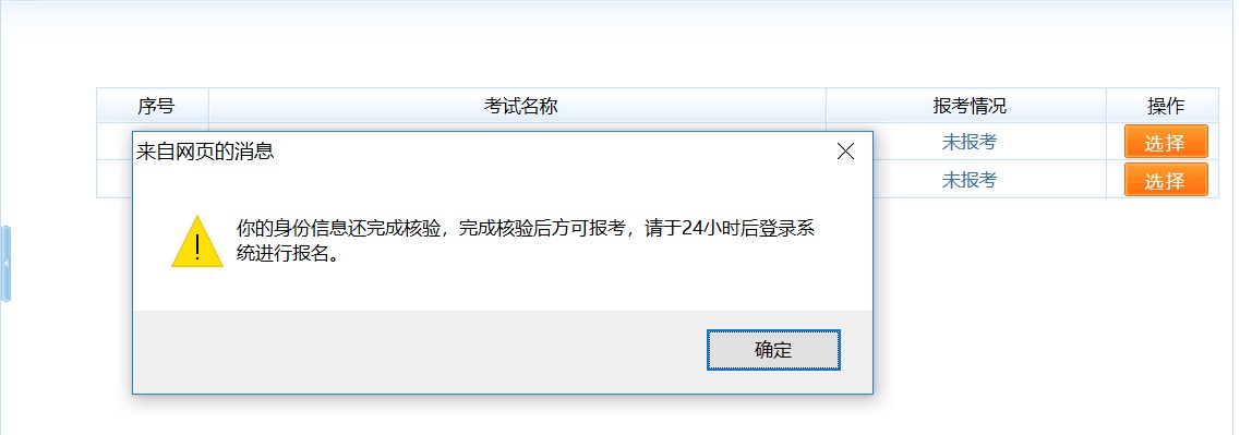 若注冊信息中的身份、學歷、學位還未通過核驗,將彈出相應的提示信息,如圖: