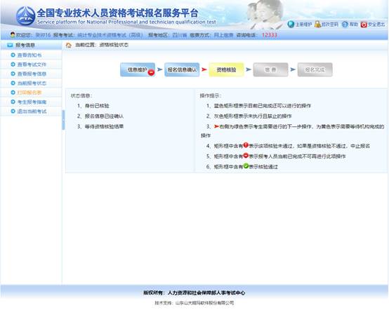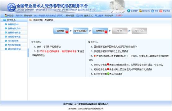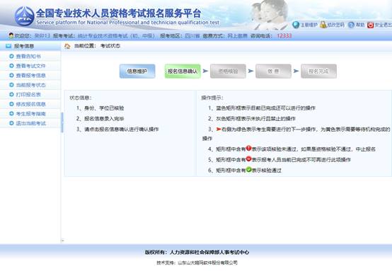 界面左側(cè)顯示狀態(tài)信息,右側(cè)顯示操作提示,請報考人員參考上述信息進行相關(guān)操作,直到報名完成。