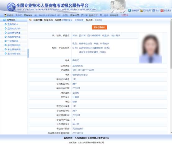 保存報名信息后,進入報考人員狀態(tài)界面(見下圖)。?