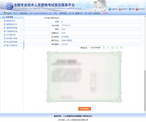 上傳完成后,點擊【報名信息確認】,進入信息確認頁面: