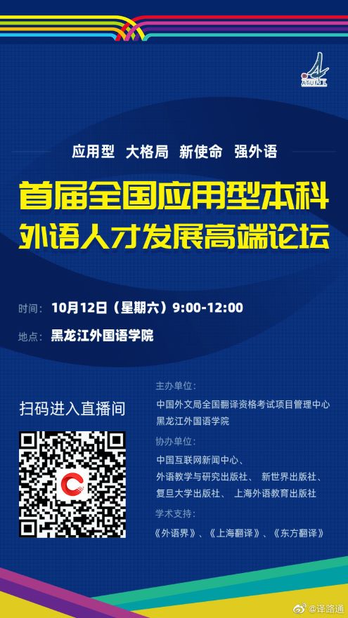 ”首屆全國(guó)應(yīng)用型本科外語人才發(fā)展高端論壇”將于10月12日上午9時(shí)在黑龍江外國(guó)語學(xué)院舉辦。此次論壇由中國(guó)外文局全國(guó)翻譯資格考試項(xiàng)目管理中心和黑龍江外國(guó)語學(xué)院共同主辦,中國(guó)網(wǎng) 、外語教學(xué)與研究出版社 、新世界出版社 、復(fù)旦大學(xué)出版社 、上海外語教育出版社聯(lián)合協(xié)辦,《外語界》、《上海翻譯》、《東方翻譯》等期刊提供學(xué)術(shù)支持。