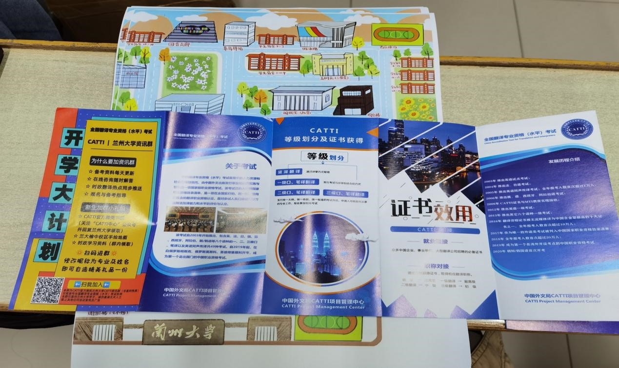 九月金秋,伴隨習習微風,新生終于邁進了蘭大的校園,開啟了四年大學生活。蘭州大學劉嘉琪、孫瑞敏、王一如等CATTI志愿者為新生們準備了CATTI宣傳冊、校區(qū)的手繪地圖、組織宣講會幫助大家熟悉校園、了解CATTI考試。